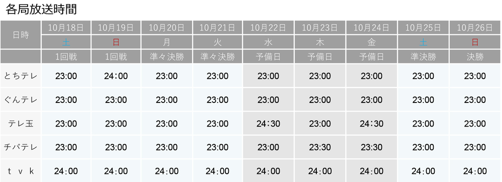 【放送予定】 準決勝10/4(土)、決勝10/5(日)