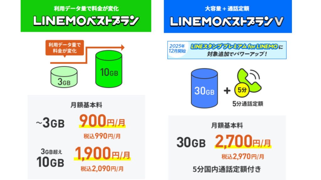 | LINEMO | ベストプランV(30GB) | 2,970円 | 22円/30秒 | 5分かけ放題がプランに込み |