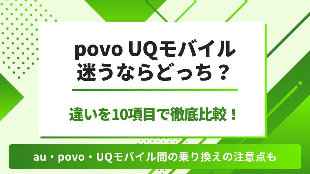 UQモバイルとpovoの違いについてより詳しく知りたい方は、povoとUQモバイルの違いをご確認ください。