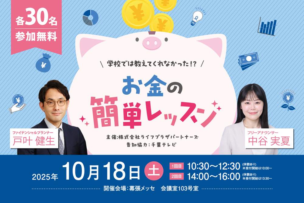 全国で活躍しているファイナンシャルプランナーの先生によるマネーセミナーを開催します。 資産形成、資産運用、新NISA、iDeCo、住宅ローン、保険のことまで、幅広く解説をしてくれます。正しいお金の知識を一緒に賢く楽しく身につけましょう。 参加は無料!お気軽にご参加ください。