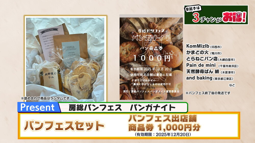 房総パンフェス パンガナイト●「パンフェスセット」5名様●「パンフェス出店舗 商品券1,000円分」10名様 ※必ず商品名を明記してご応募ください 応募締切2025年11月7日(金)