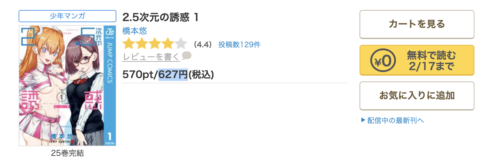 以上の手順で、漫画《2.5次元の誘惑》を安く読むことができます。
