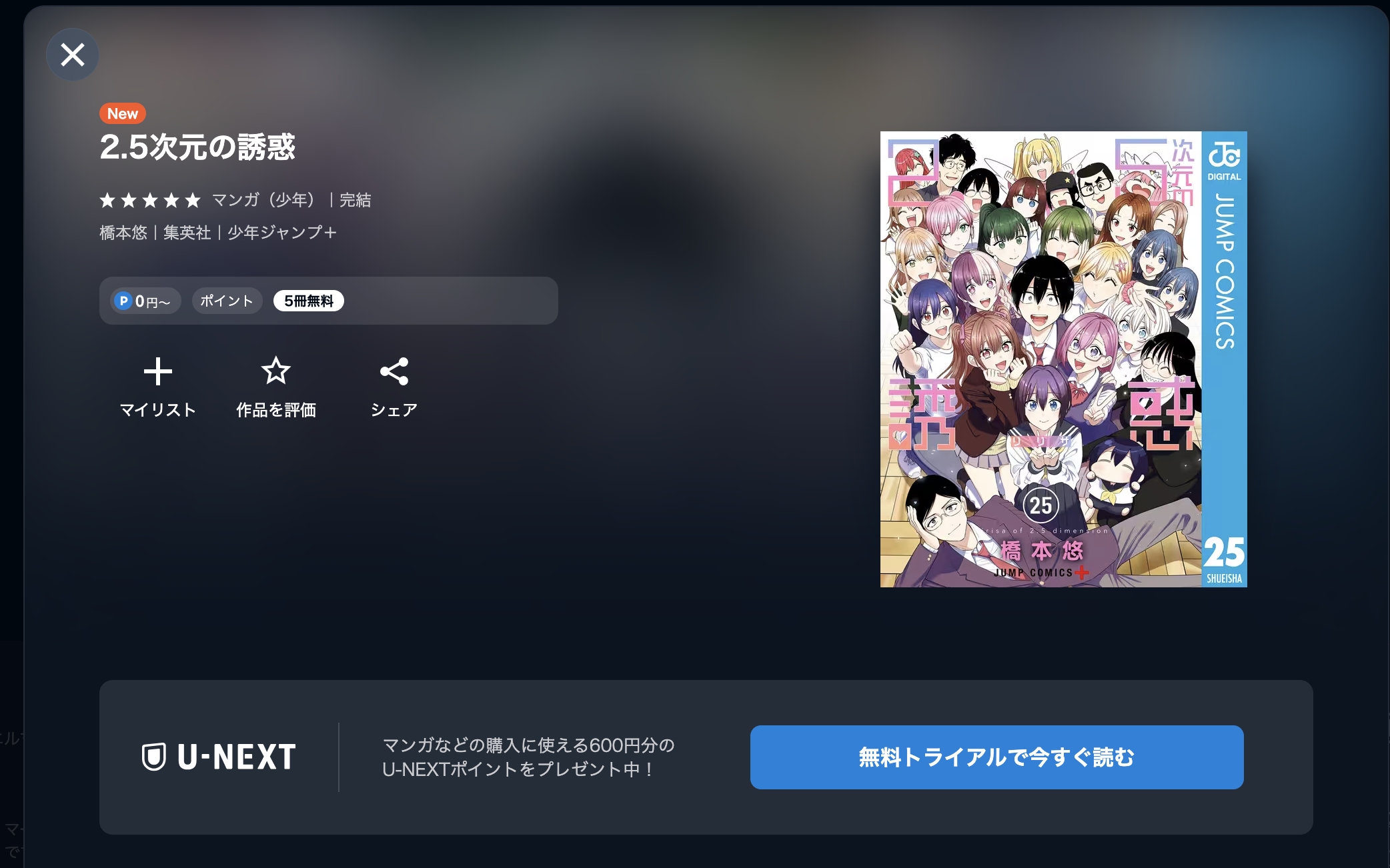 以上の手順で、漫画《2.5次元の誘惑》を無料で読むことができます。
