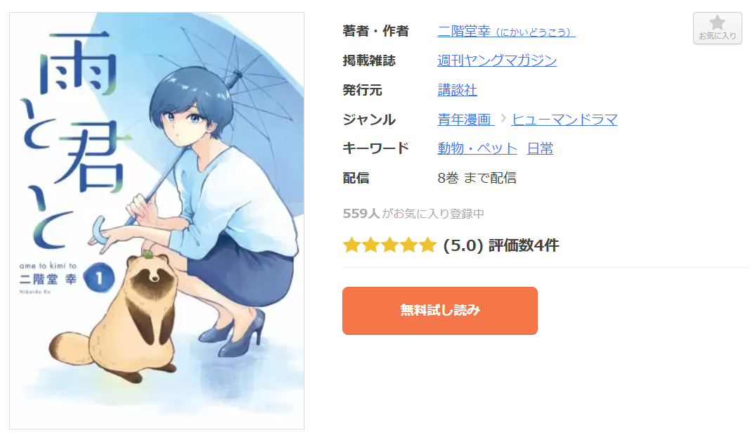 漫画《雨と君と》は、ヤングマガジンで連載されている漫画で、単行本は全8巻まで発売されています。