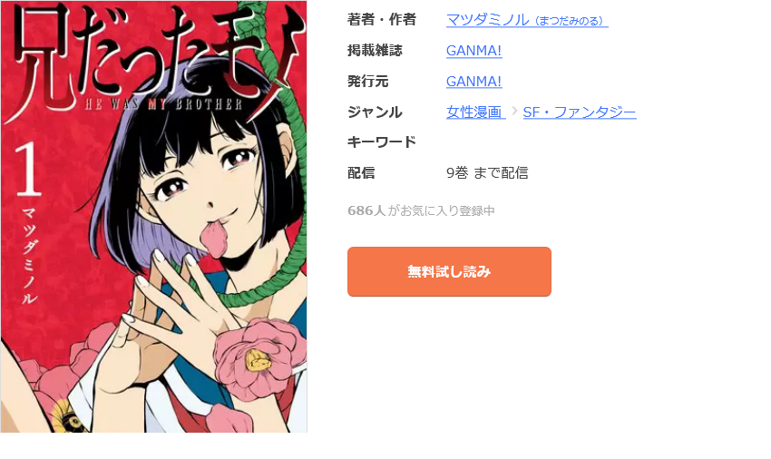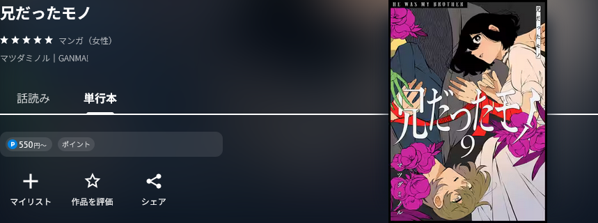 漫画《兄だったモノ》は、GANMA!で連載されている漫画で、単行本は全9巻まで発売されています。