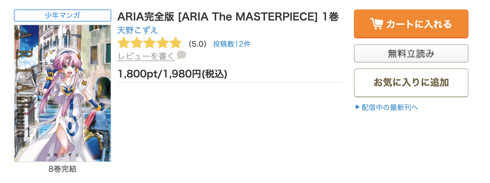 全巻無料ではないものの、クーポンやポイント還元で一番お得に漫画《ARIA》を読むことができます。
