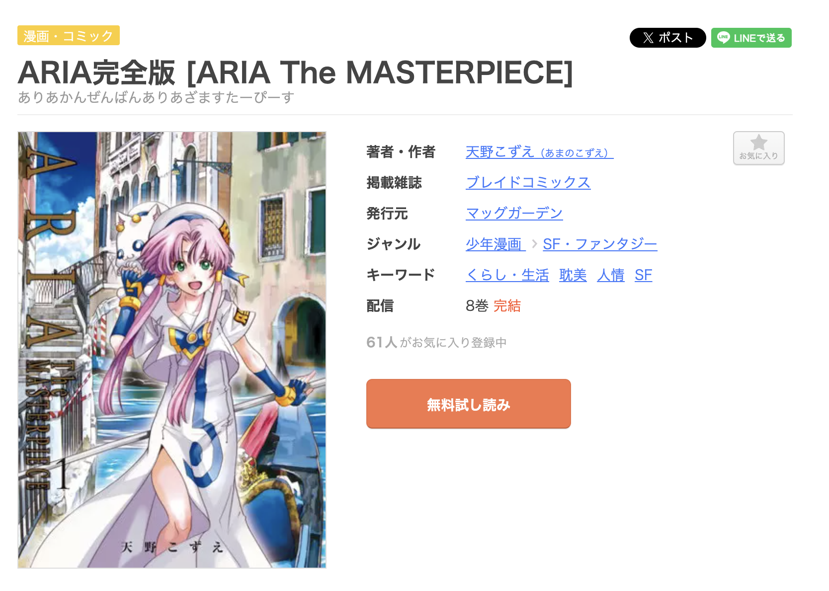 できるなら漫画《ARIA》の最終話を無料で読みたいですよね!
