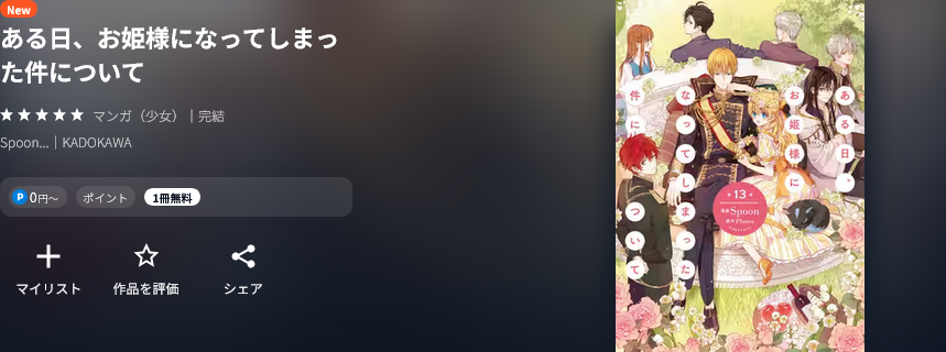 全巻無料ではないものの、クーポンやポイント還元で一番お得に漫画《ある日、お姫様になってしまった件について》を読むことができます。