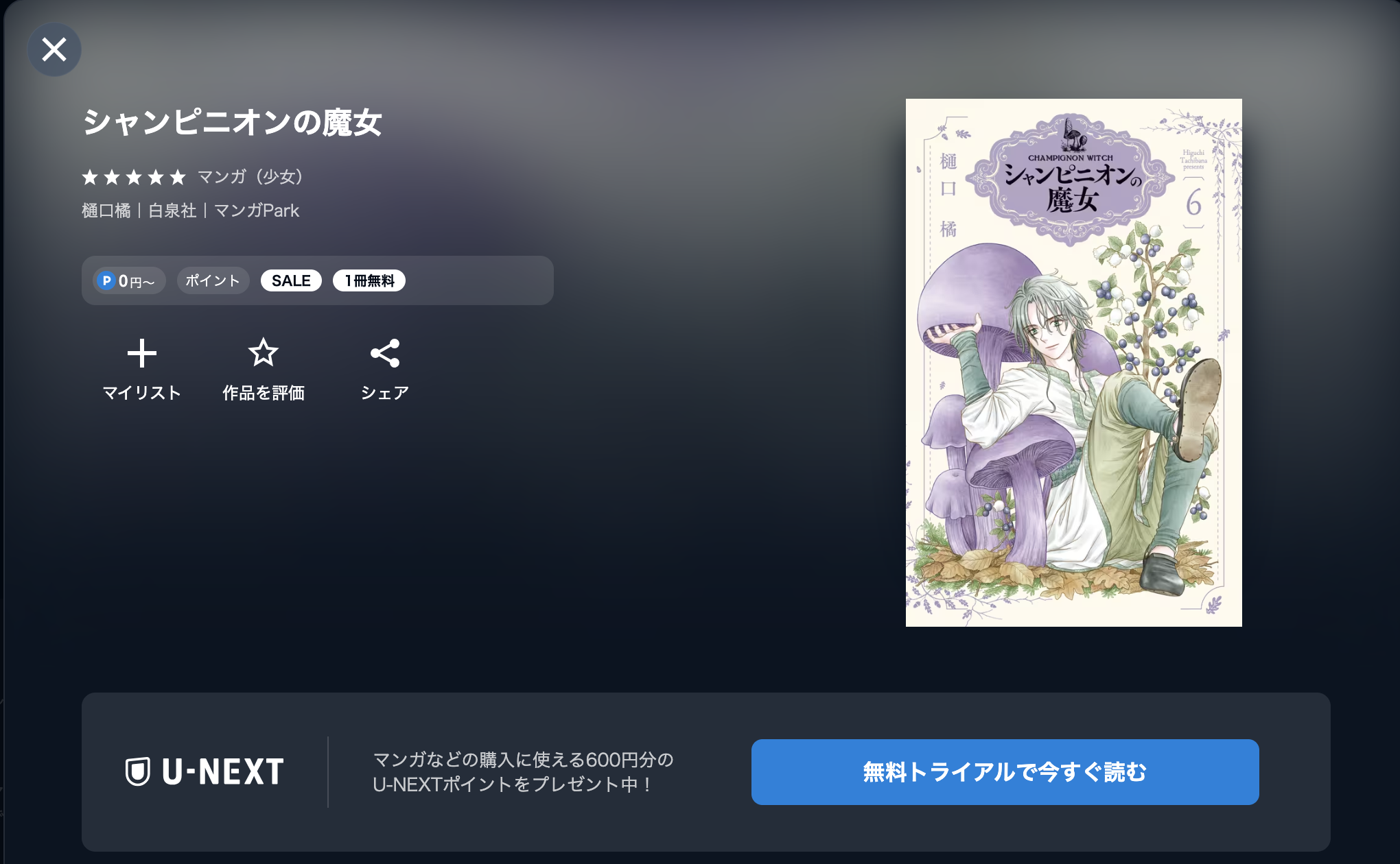 以上の手順で、漫画《シャンピニオンの魔女》を無料で読むことができます。