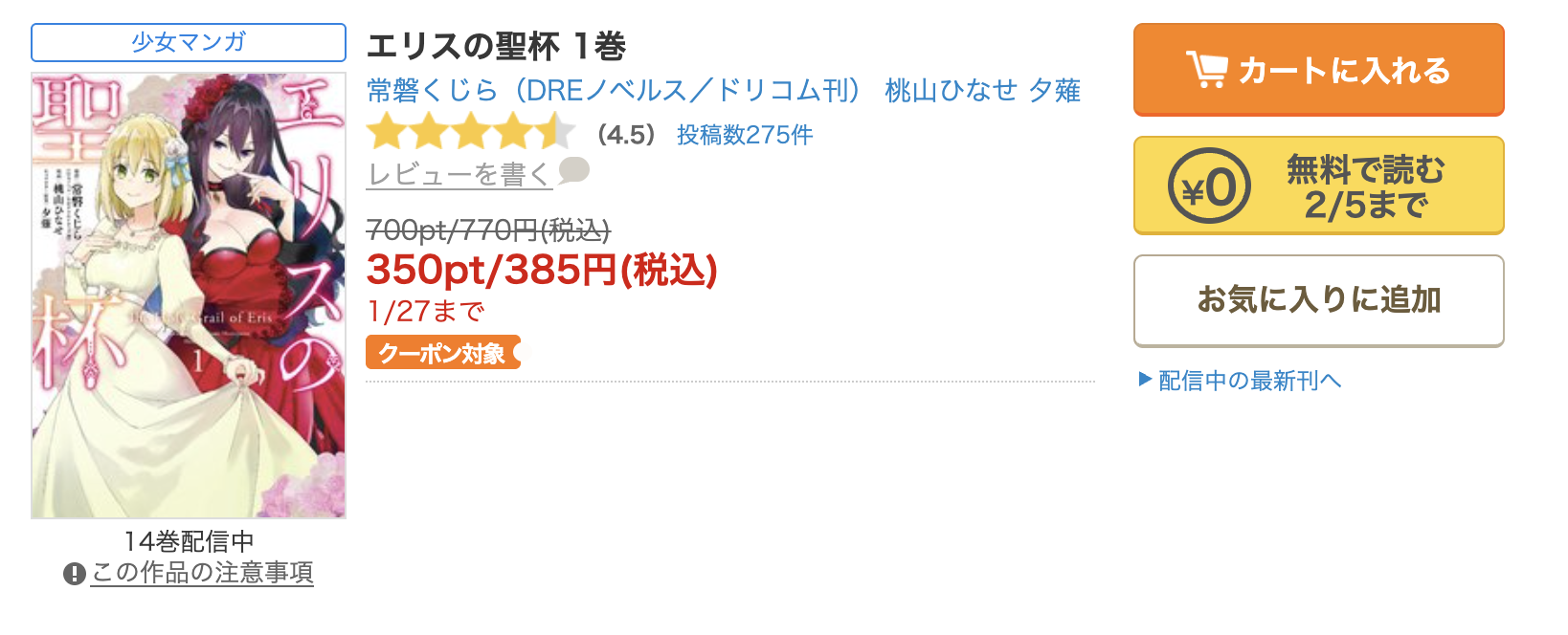 - 漫画《エリスの聖杯》をポイントを適用して読む