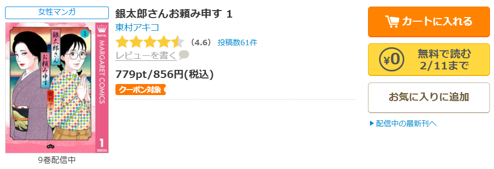 漫画《銀太郎さんお頼み申す》の最新の期間限定キャンペーン