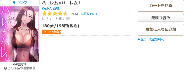 なぜなら、無料期間にもらえるポイントで、漫画《ハーレム×ハーレム》の64巻を無料で読むことができるからです。