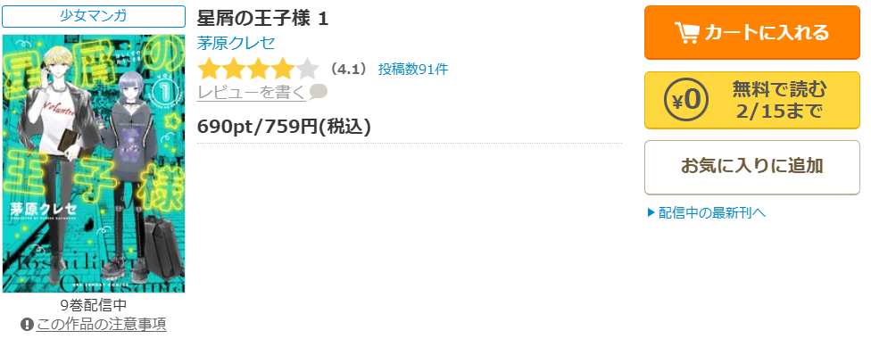 現在、漫画《星屑の王子様》は9巻まで配信されています。