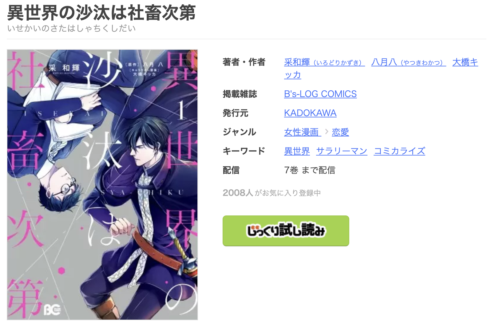 | 作品名 | 異世界の沙汰は社畜次第 |