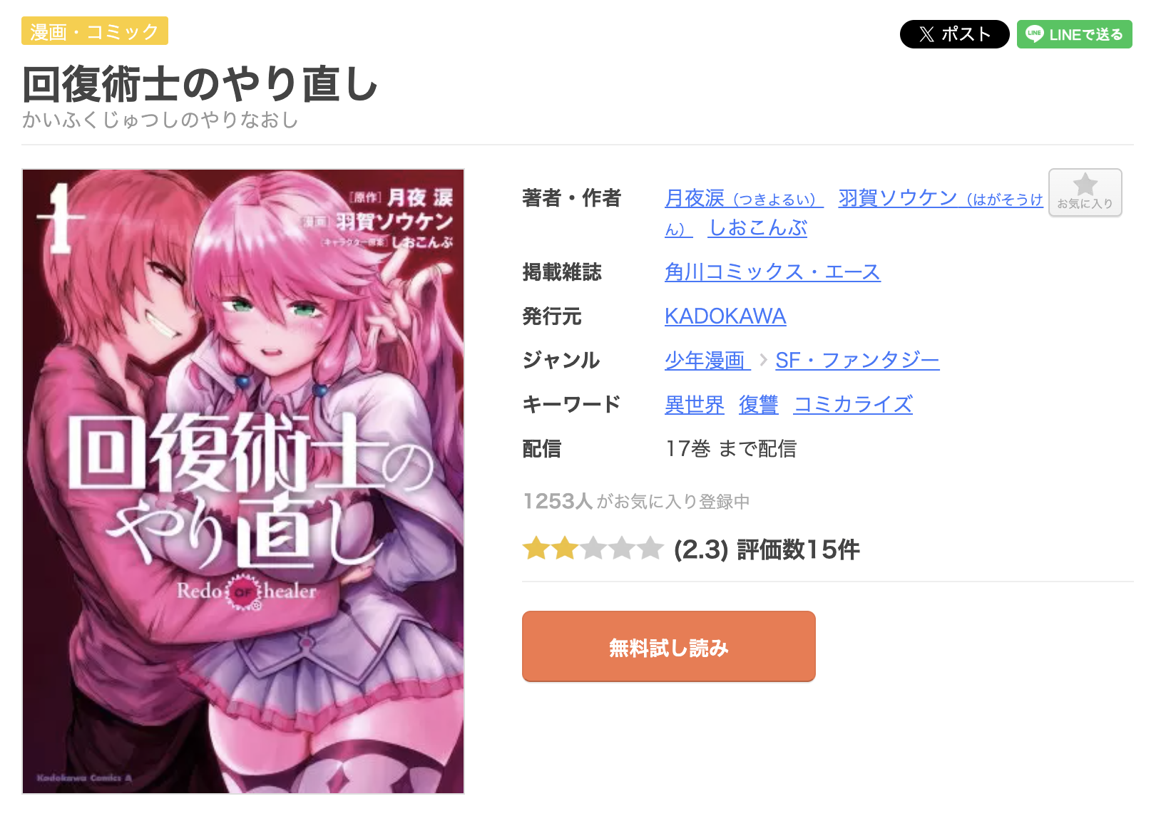 以上の手順で、漫画《回復術士のやり直し》を無料で読むことができます。