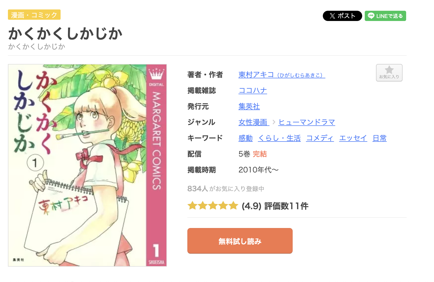 以上の手順で、漫画《かくかくしかじか》を無料で読むことができます。