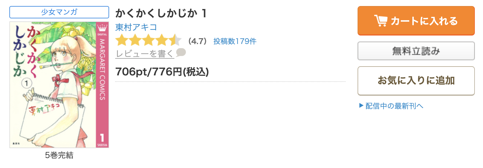 現在、漫画《かくかくしかじか》は5巻まで配信されています。
