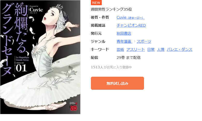 以上の手順で、漫画《絢爛たるグランドセーヌ》を無料で読むことができます。