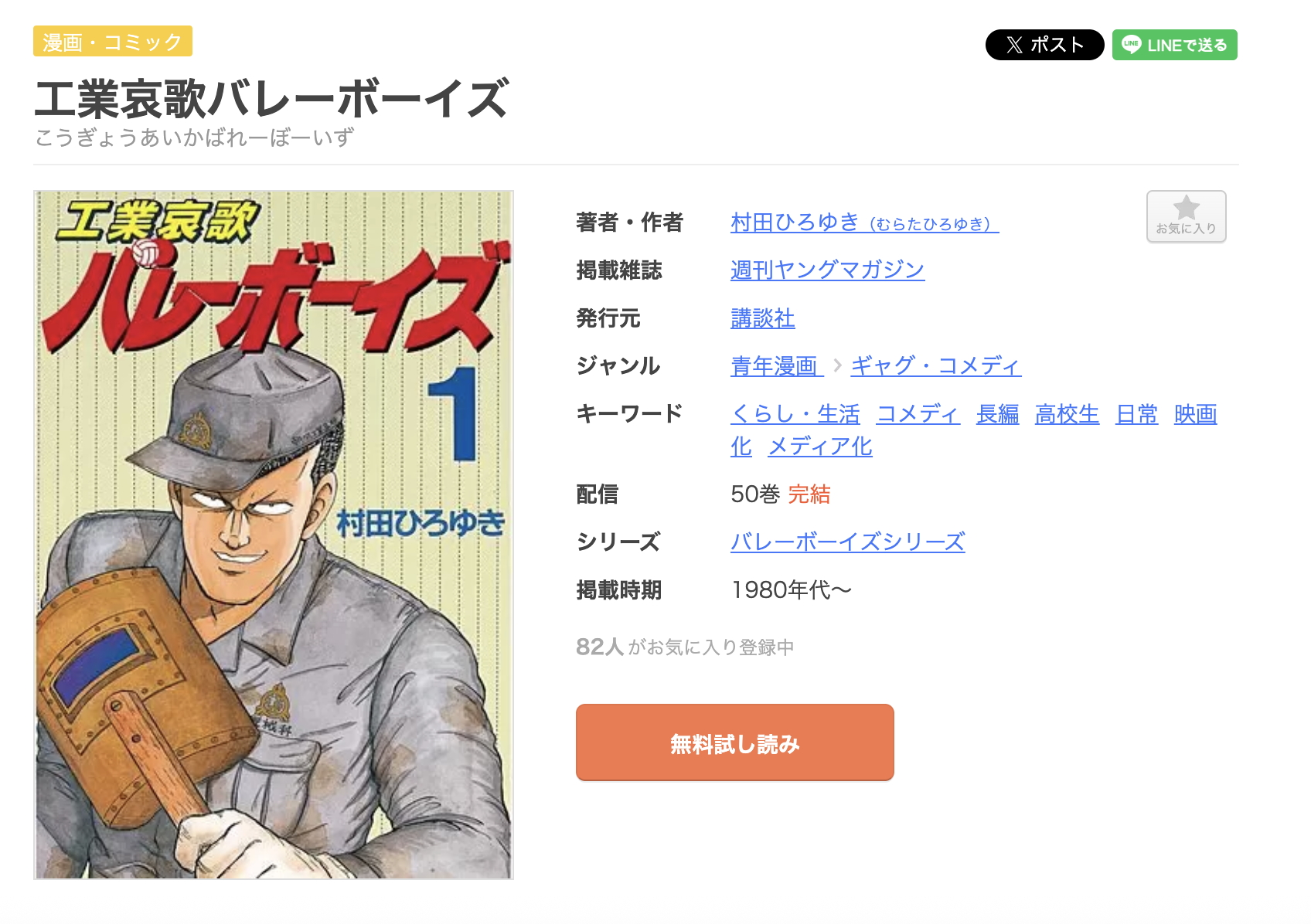 以上の手順で、漫画《工業哀歌バレーボーイズ》を無料で読むことができます。