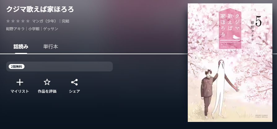 全話無料では読めませんが、マンガアプリ「サンデーうぇぶり」なら漫画《クジマ歌えば家ほろろ》を無料で2話分読むことができます。