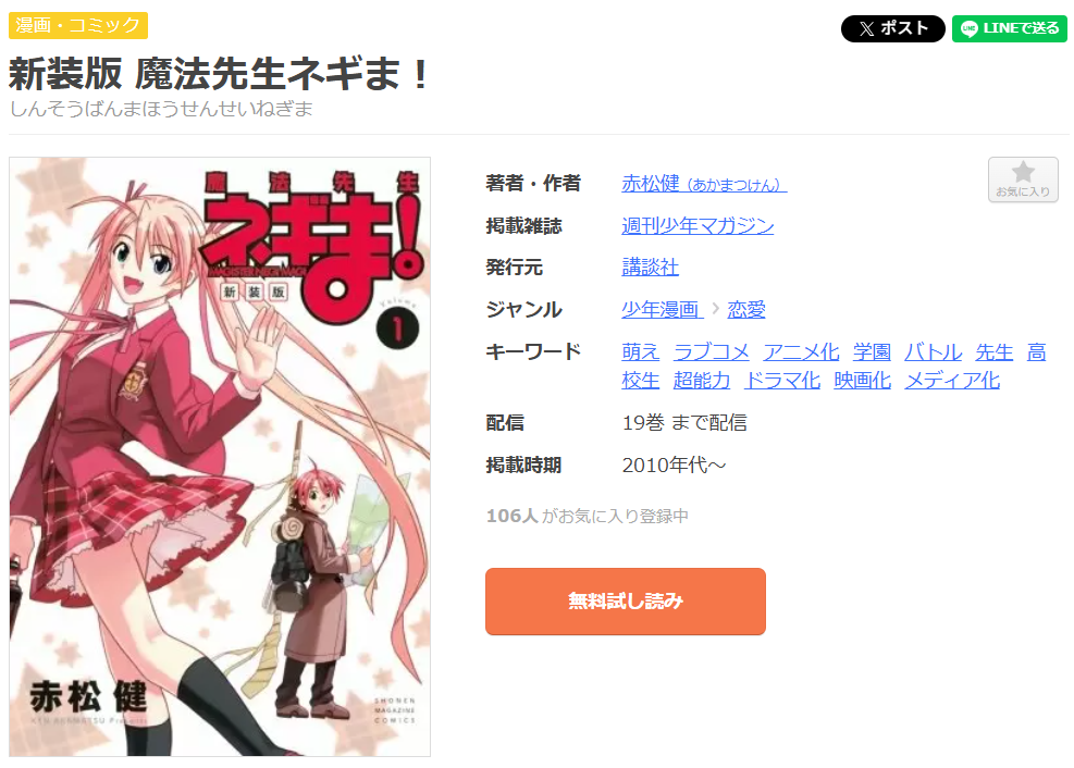 魔法先生ネギま!が全話無料で読めるマンガアプリ