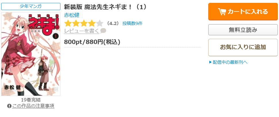 魔法先生ネギま!が全巻無料で読める電子書籍サイト