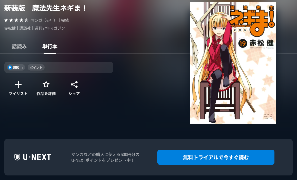 そこで、「U-NEXT」「コミック.jp」で漫画《魔法先生ネギま!》を無料で読む方法をまとめました。