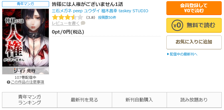 コミックシーモアで皆様には人権がございませんを無料で読む