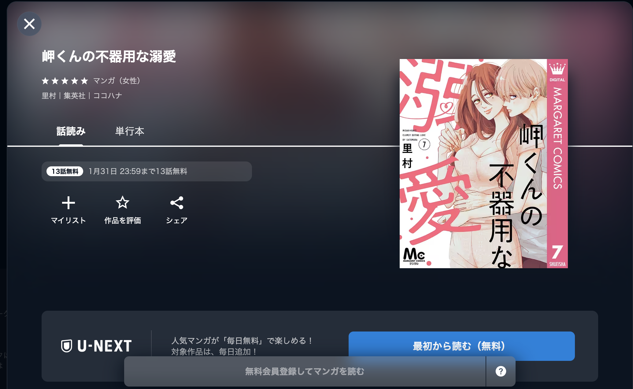 U-NEXTで、漫画《岬くんの不器用な溺愛》を全巻無料で読むことはできません。