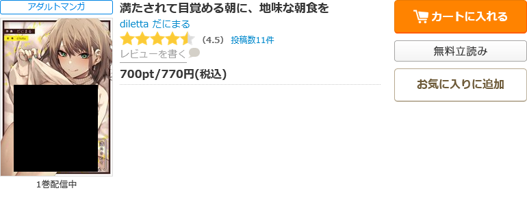 以上のクーポン、ポイント還元の二つの初回特典を使用することで、漫画《満たされて目覚める朝に、地味な朝食を》の全巻をお得にまとめ買いすることができます。