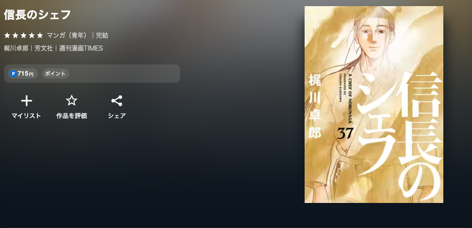 《信長のシェフ》の最終巻(37巻)をU-NEXTでお得に読む