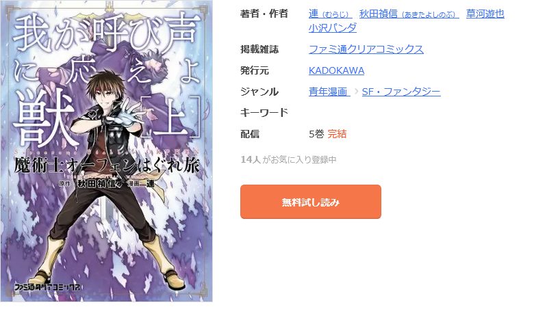 現在、漫画《魔術士オーフェンはぐれ旅》は5巻まで配信されています。