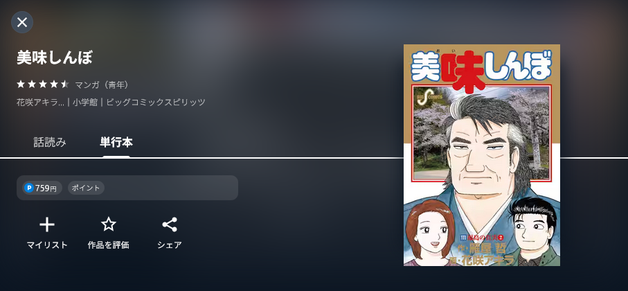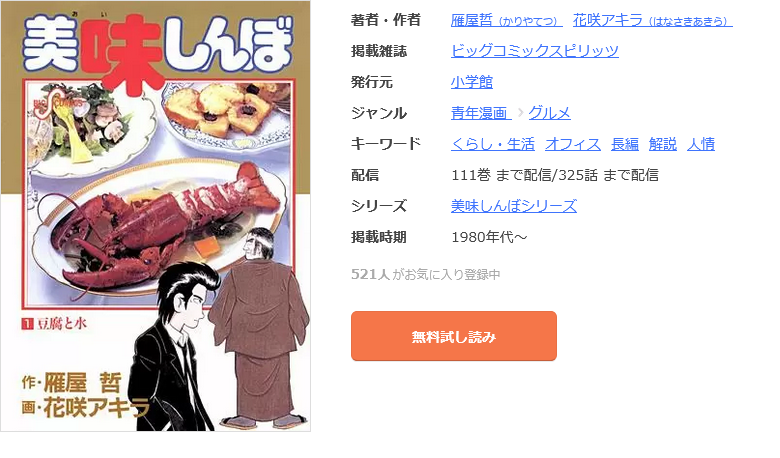 以上の手順で、漫画《美味しんぼ》を無料で読むことができます。