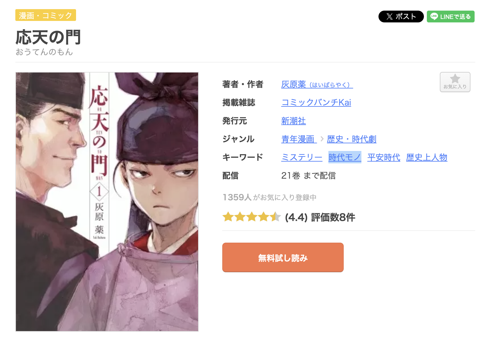 LINEマンガで《応天の門》を1話〜3話無料で読む