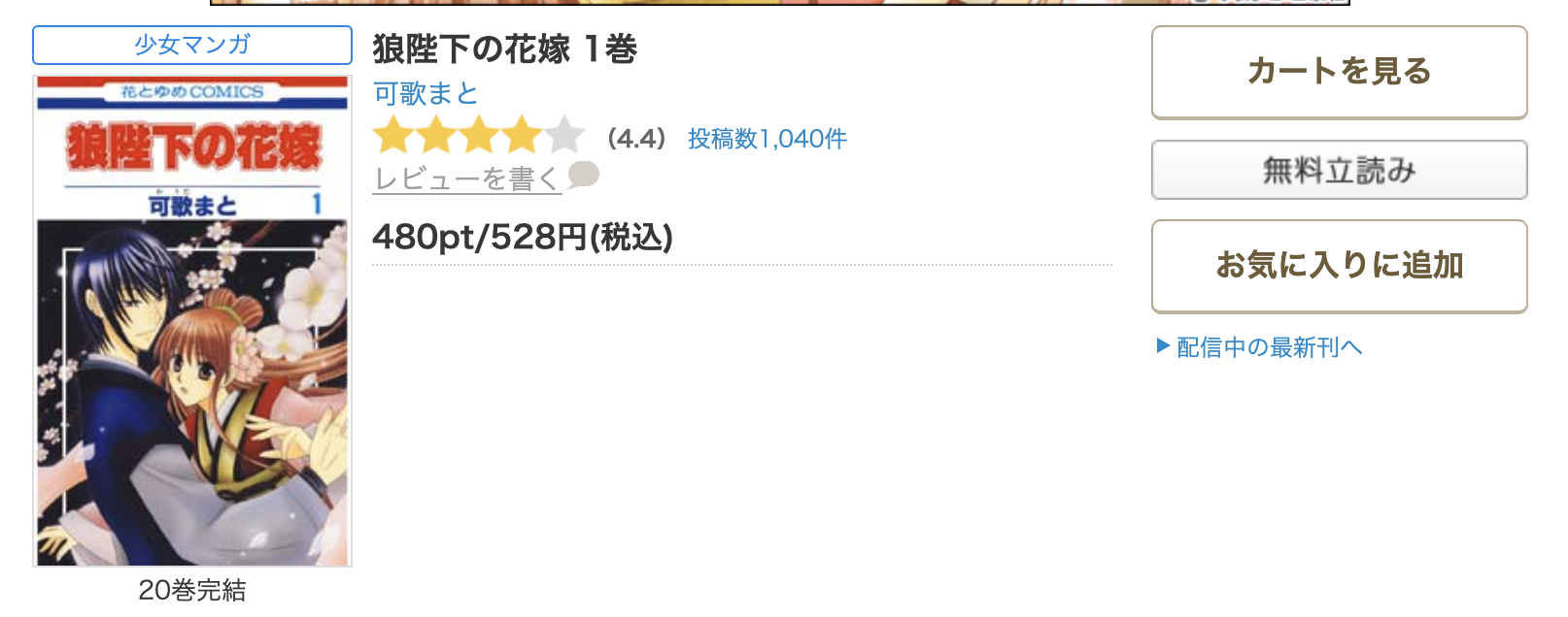 現在、漫画《狼陛下の花嫁》は20巻まで配信されています。