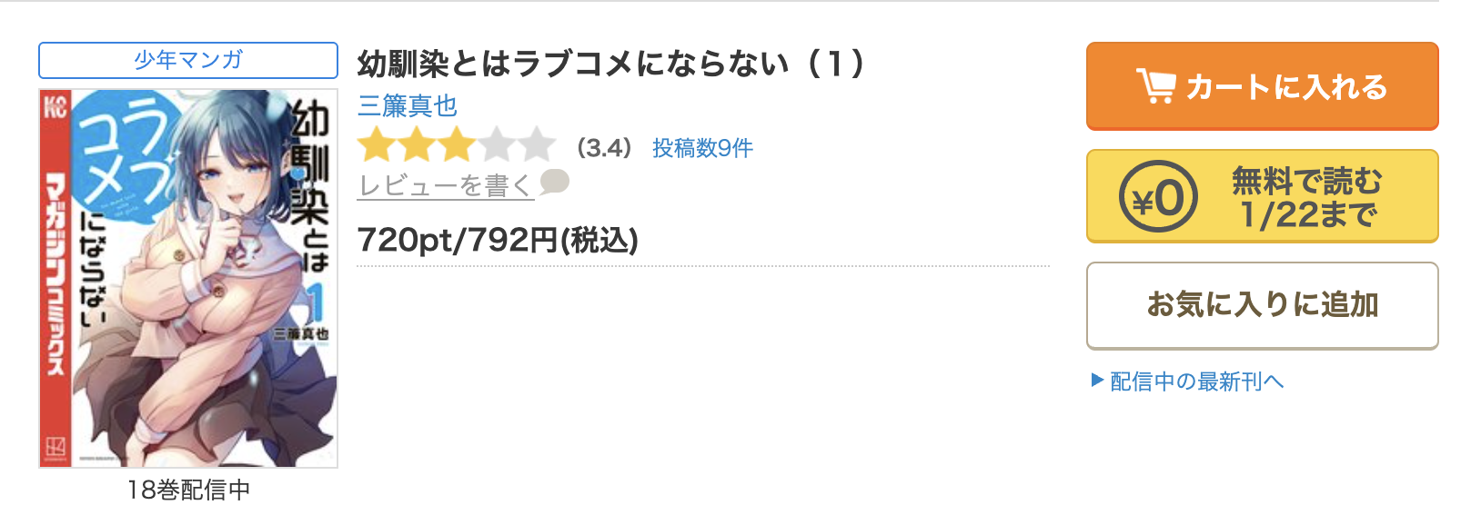 全巻無料ではないものの、クーポンやポイント還元で一番お得に漫画《幼馴染とはラブコメにならない》を読むことができます。
