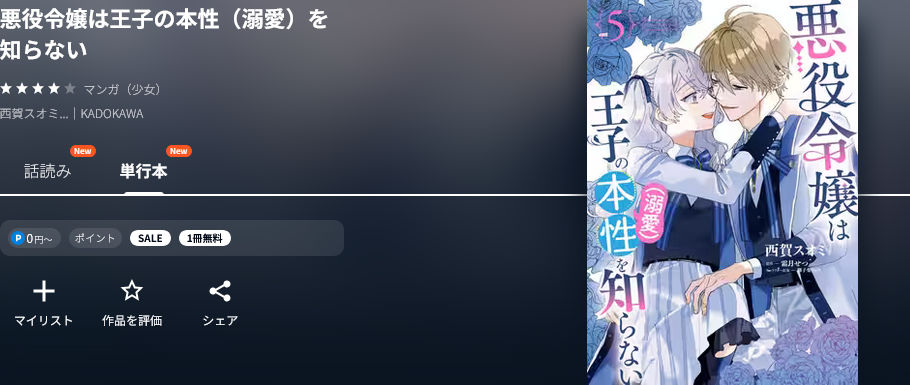 全巻無料で読めなくても、「最新刊だけでも無料で読みたい」というあなたのために、漫画《悪役令嬢は王子の本性(溺愛)を知らない》の最新刊(5巻)を無料で読める電子書籍サイトやマンガアプリがあるか調査しました。