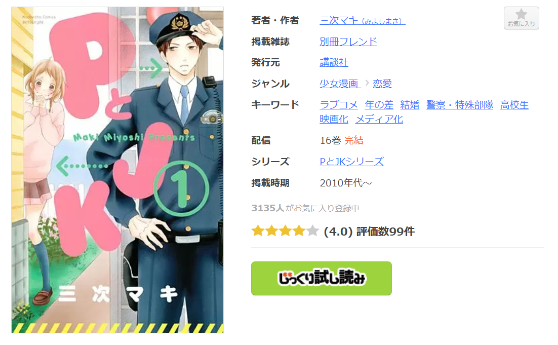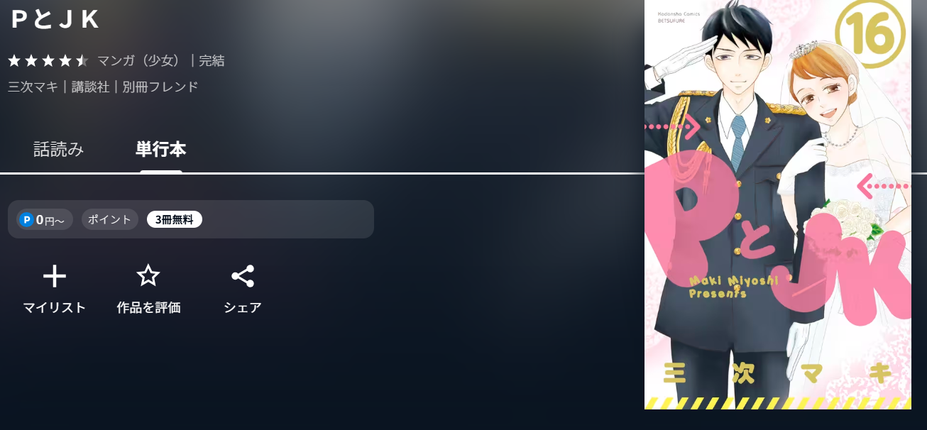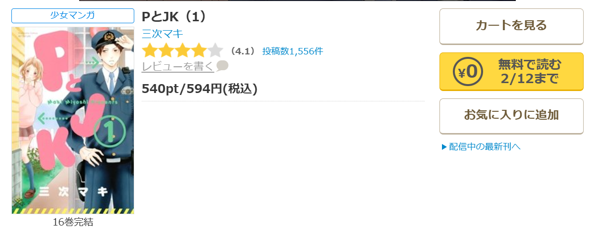 漫画《PとJK》を全話無料(全巻無料)では読めませんが、めちゃコミなら1巻~3巻を無料で読むことができます。(2026年2月12日まで)