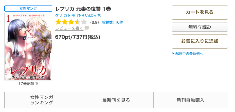 漫画《レプリカ 元妻の復讐》は、コミックタタンで連載されている漫画で、単行本は全17巻まで発売されています。