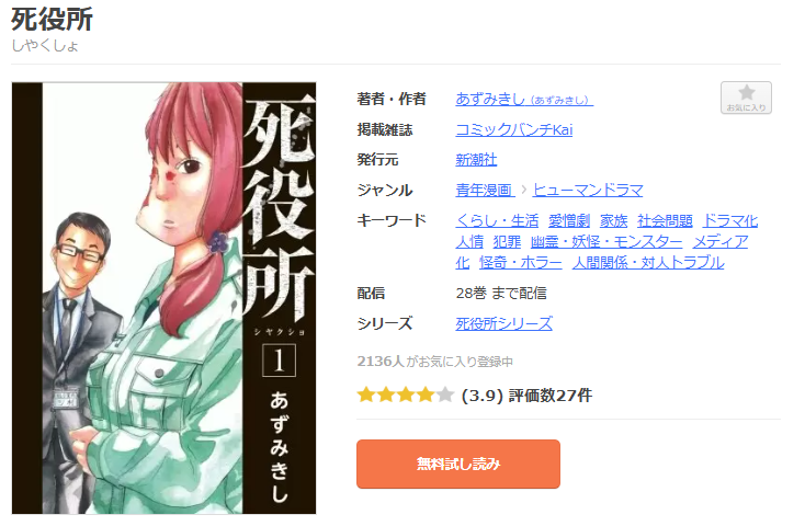 次に、漫画《死役所》を全話無料(全巻無料)で読める、または無料で読めるマンガアプリがあるかどうかをまとめました。