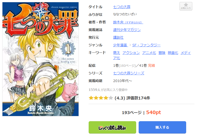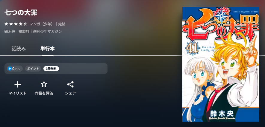 七つの大罪が全巻無料で読める電子書籍サイト