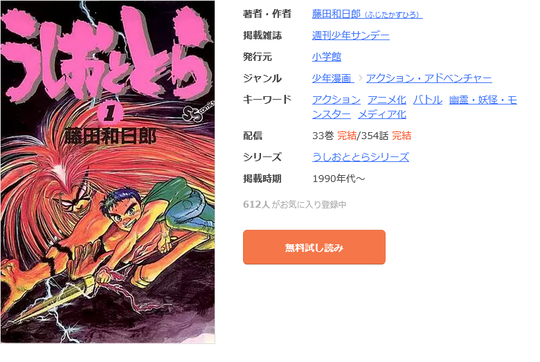そこで、漫画《うしおととら》を全巻無料(全話無料)で読める、または一部の巻を無料で読める電子書籍サイトやスマホのマンガアプリがあるかどうかを調べました。