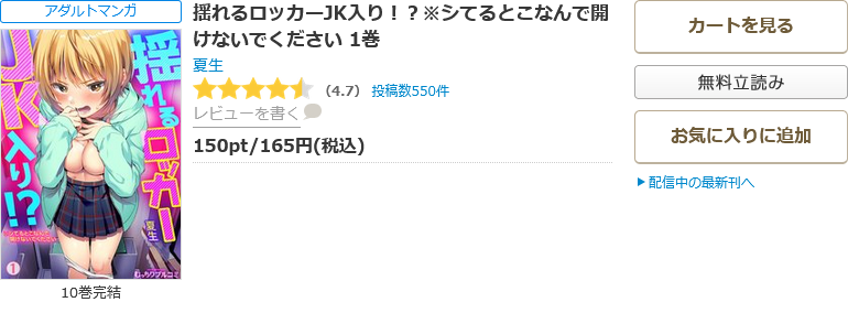 漫画《揺れるロッカーJK入り!?※シてるとこなんで開けないでください》は全巻で1,650円(税込)なので、「コミックシーモア1000」に登録すれば全巻お得に読めます。